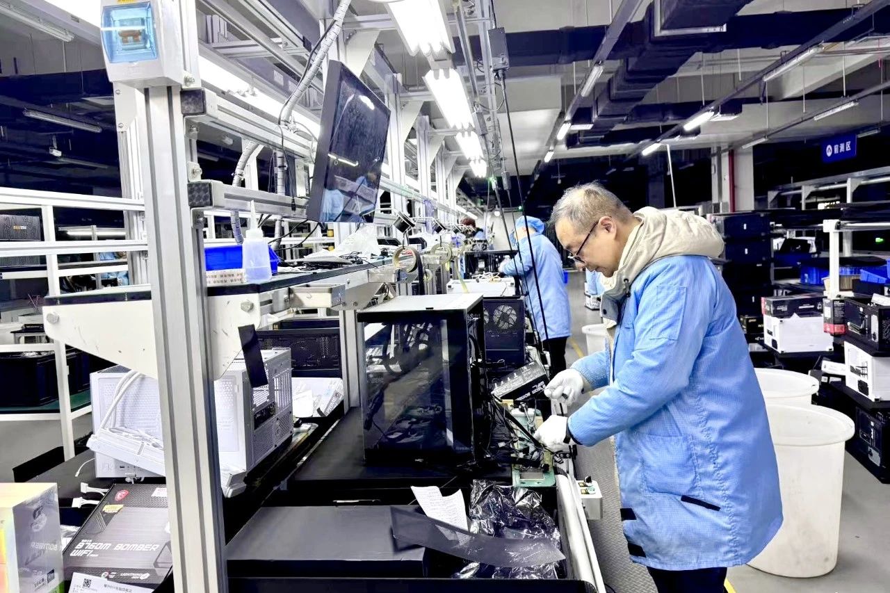 武汉攀升鼎承科技有限公司的生产基地一派繁忙景象。智能化生产线依旧有序运转,各种电脑零部件源源不断地从生产线上产出,工人们各司其职,细心作业,以饱满的热情和高效的智能化生产,迎接新一年。