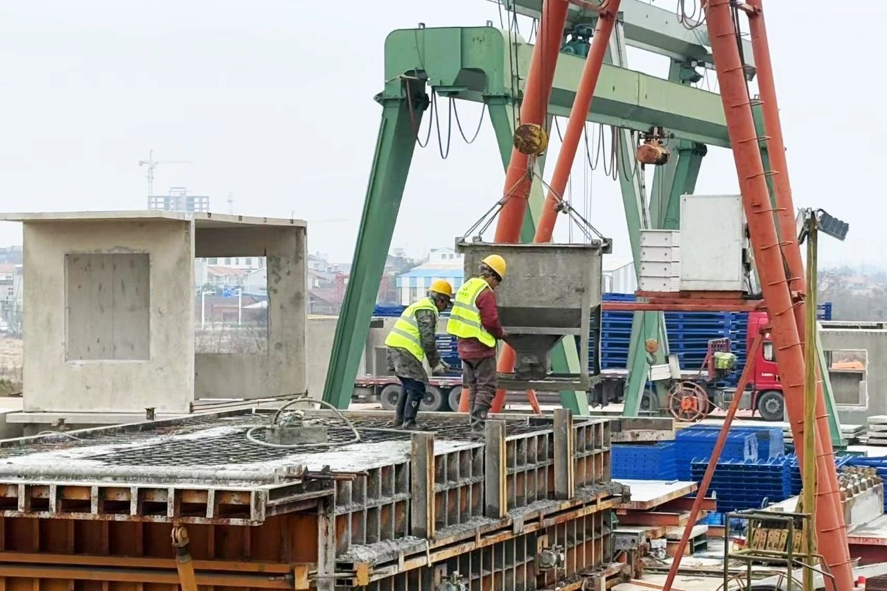 记者近日走访该公司生产基地时看到,工人们正熟练操作各类先进设备,龙门吊在空中灵活地往返穿梭,在精准的操作流程下,各类预制构件逐步成型,一派繁忙而有序的景象。
