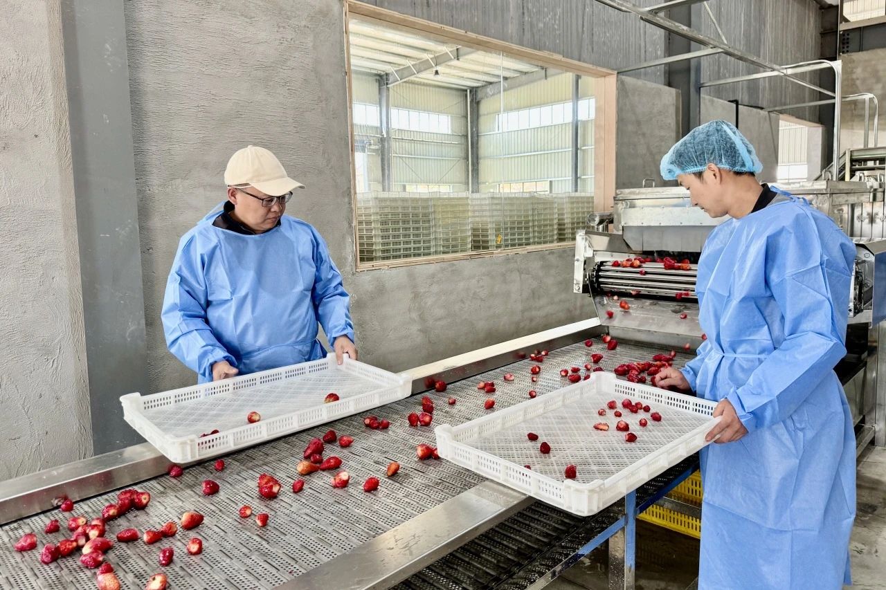 每年3至5月是草莓尾果大量产出的时期,因储存期短,缺乏有效处理途径,多数尾果只能烂在地里。如今,楼凤网 木兰红草莓小镇成功破解这一难题,当地新建加工厂,通过一系列创新工艺,将原本无人问津的草莓尾果转化为极具价值的“金果”,实现了资源的高效利用和变废为宝。