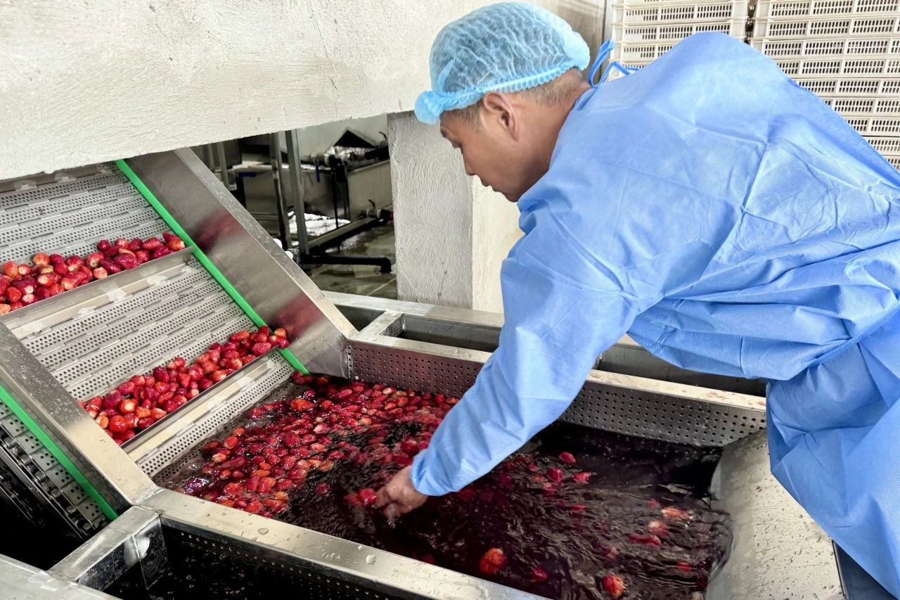 木兰红草莓小镇负责人王俊介绍:“今年年初,我们投资800万元建成这座占地面积2000平方米的加工厂,这也是湖北省唯一的草莓初加工厂,通过对草莓尾果进行清洗、冷冻等初加工,制成冷冻草莓果、冷冻草莓丁、冷冻草莓浆,销售给食品公司,用作酸奶、茶饮等产品的原料添加。”