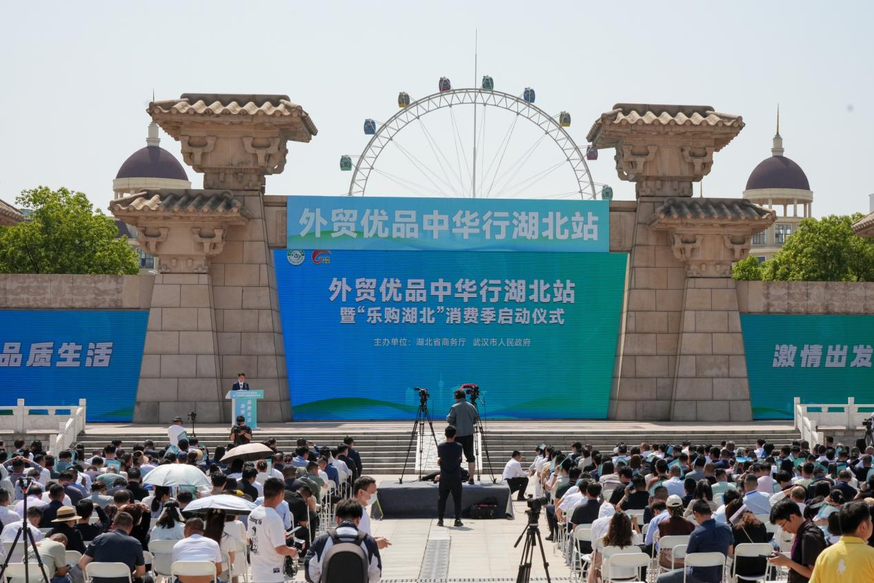4月26日,由商务部、湖北省商务厅主办的外贸优品中华行湖北站暨“乐购湖北”消费季活动在黄陂汉口北国际贸易城开幕。作为全国首轮内外贸一体化试点省份的标志性实践,活动首日即吸引10万人次到场,智能科技、国潮设计、跨境好物交织成消费升级的澎湃图景。