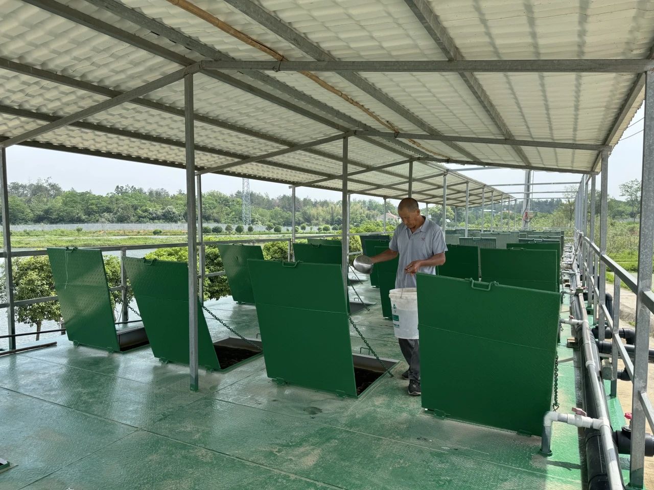 在基地另一头,池塘边的军绿色集装箱养殖系统格外醒目。这些25立方米的箱体通过24小时水循环系统,实现了最早期的设施化养殖突破,单箱年产鱼量超4000斤,是传统养殖产能的4倍。