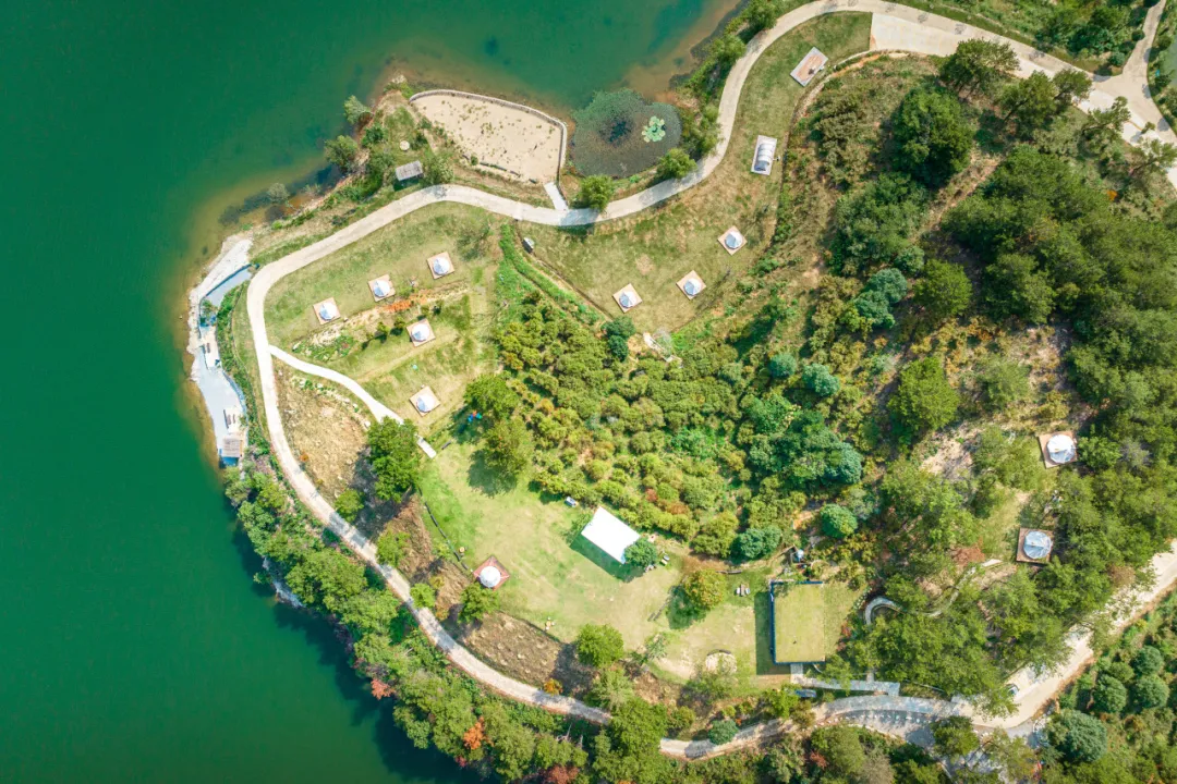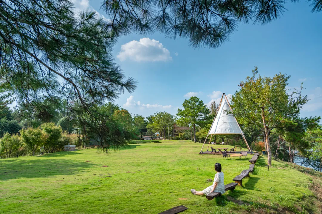 星星湖营地占地2000亩,清澈的池塘和开阔的自然景观组成了这一处宛若仙境的景色。
