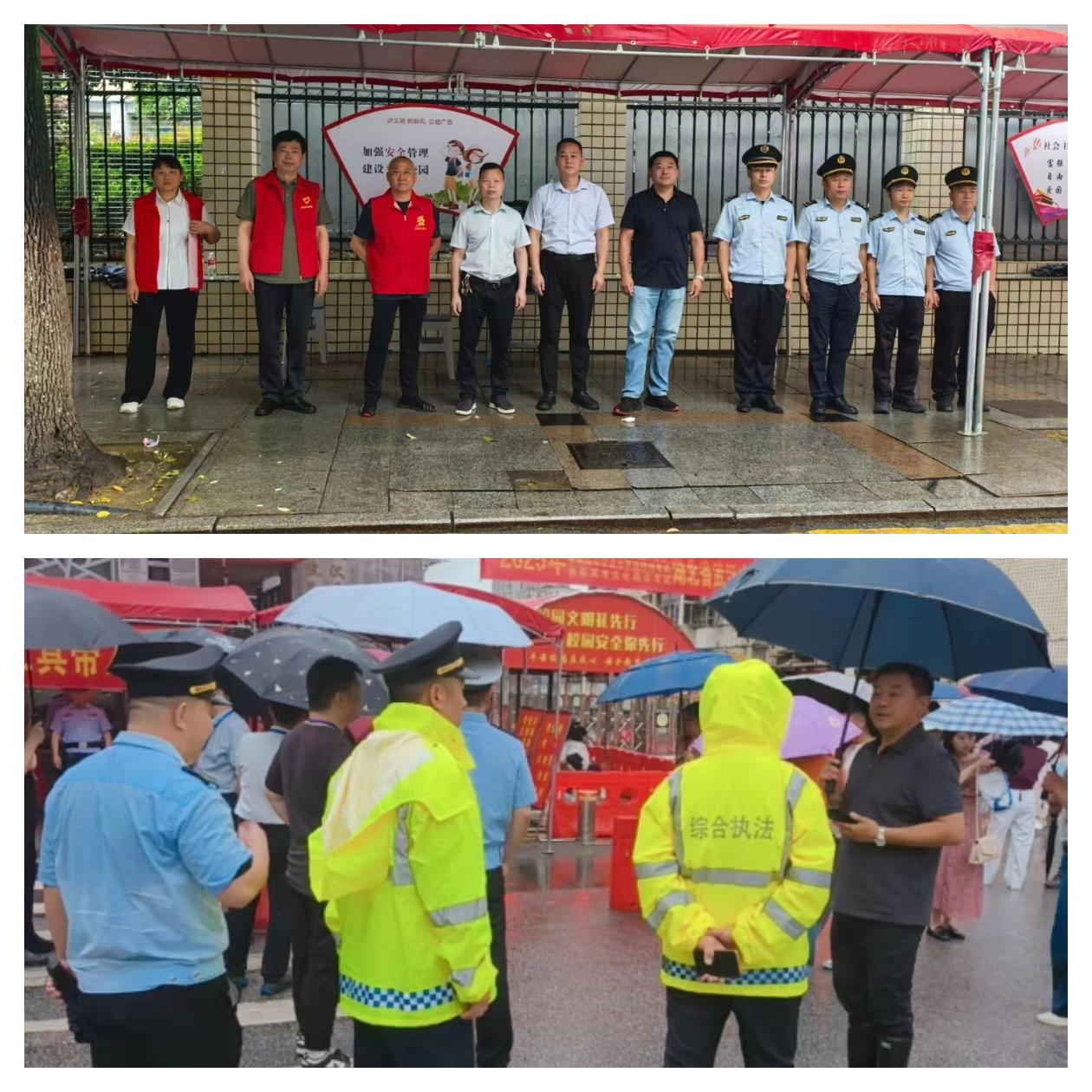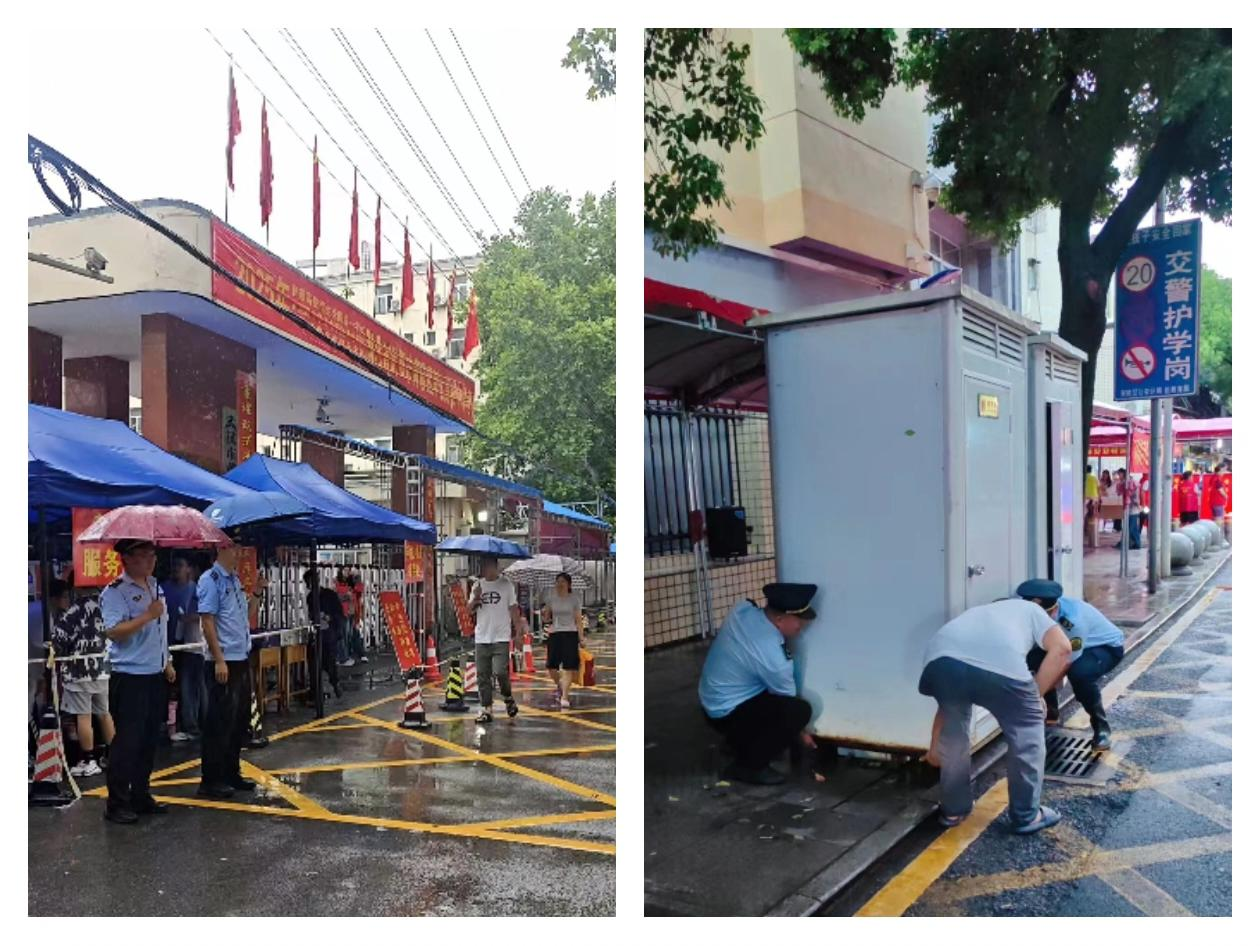 为统筹做好护考保障与防汛排涝工作,黄陂前川街道办事处提前部署,组织街道综合执法中心、城管办等部门,针对前川地区黄陂一中、黄陂六中、黄陂实验中学、黄陂七中、黄陂职高5个考点,与区城管局分工协作、联合保障,冒雨全程值守。