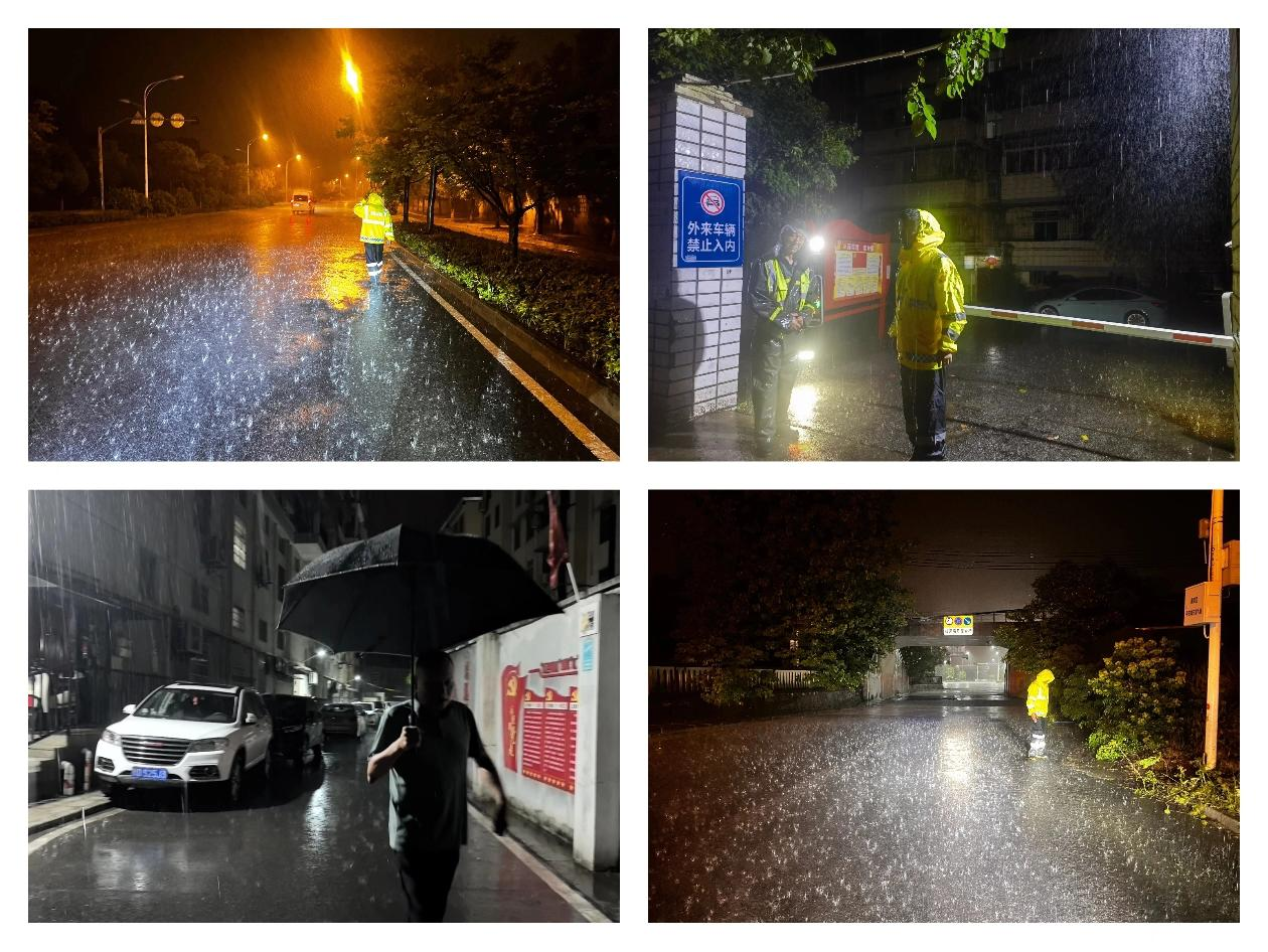 天未放亮,队员们虽身着雨衣仍全身湿透;一夜奋战后,刚趁大雨间歇稍作休整,暴雨再次来袭,未等衣干便又投入雨中。他们在百锦街定远公园西门积水点设置警示路牌,开展交通管制值守;在滠河街大全景碧桂园组织社区开展抽水排涝自救;在前川欣城工地倒灌导致的文教巷老旧小区积水点,队员们蹚水查勘现场,协助社区抽水排涝,联系水务部门专业人员及相关领导现场指导,会商排水方案,督促施工单位挖沟排水;在路边掏沟疏箅……
