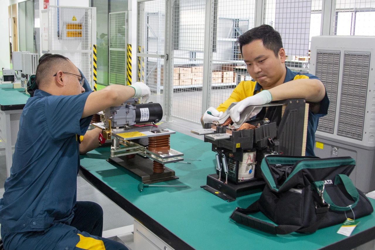 长海电气断路器手车生产线。