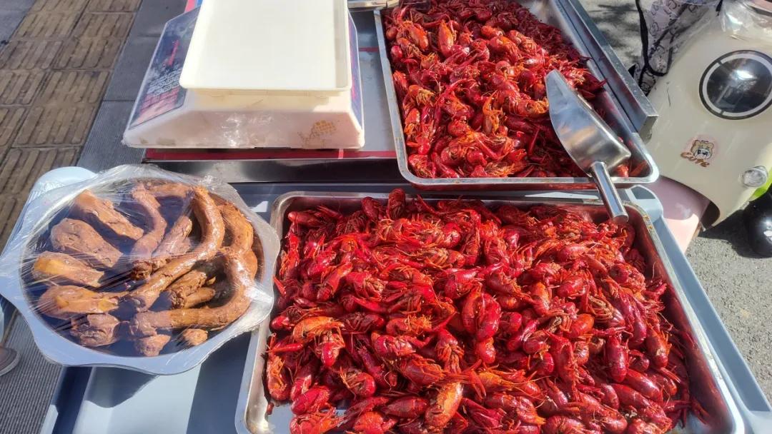 下午4点刚过,前川百锦街一家酒店门口就排起长队。黄陂三鲜冒着热气,小龙虾红得发亮,凉面拌着本地香油的香,连炸土豆条都带着黄陂人爱的辣乎乎。