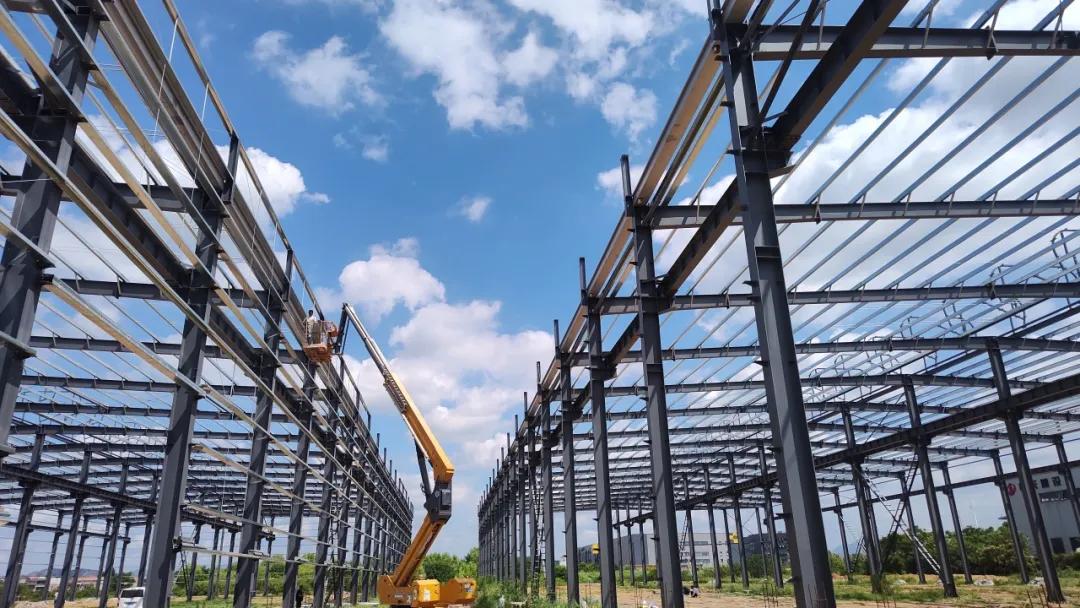按照当前进度,预计今年9月份钢结构厂房将全部竣工,11月底完成所有项目建设,12月份正式投入生产。