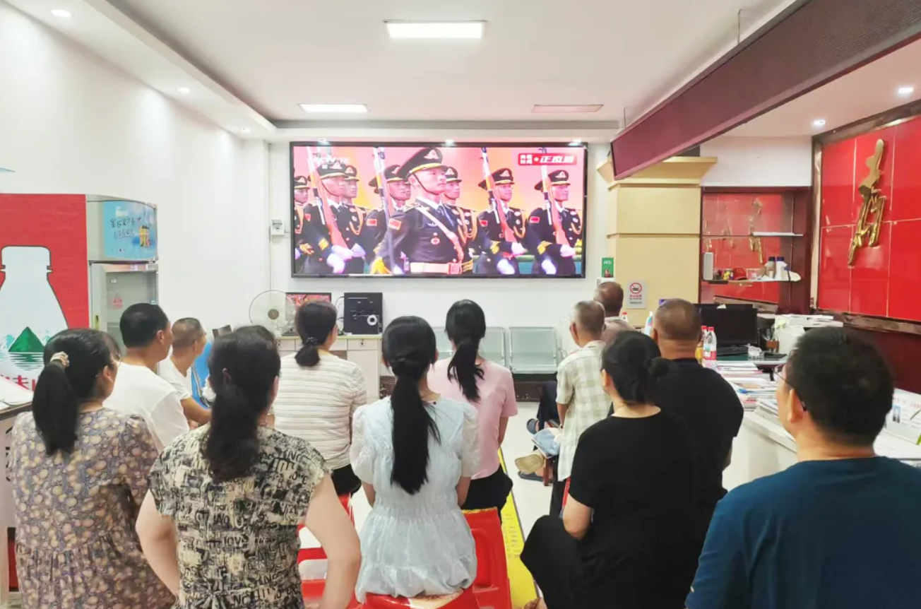 在前川街道沙港社区,辖区党员群众专注观看,为威武的人民军队喝彩,为富强的祖国自豪。社区干事方芊动情地说道:“这场阅兵让我直观感受到国家实力与民族凝聚力,身为新时代青年,我倍感骄傲!我们定会赓续先辈革命精神,传递这份爱国情。”