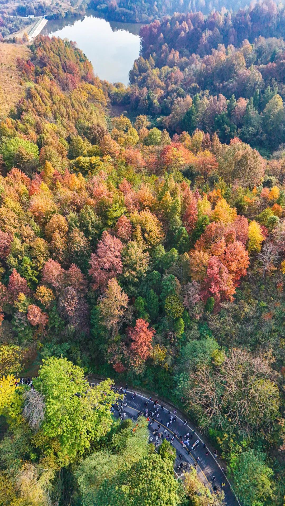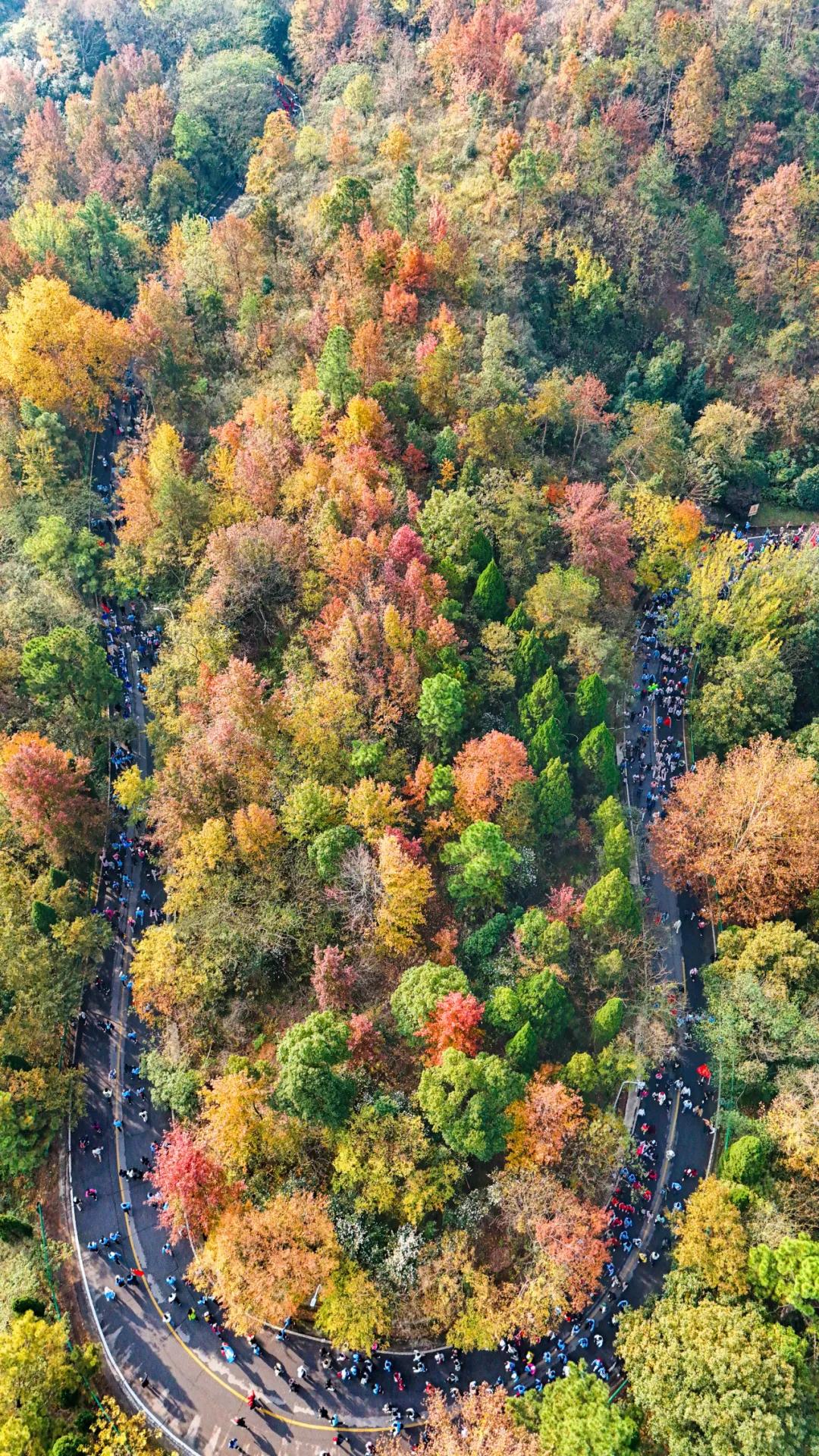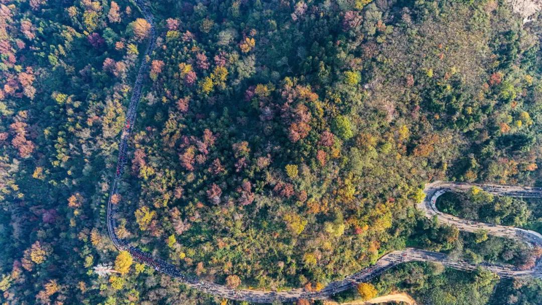 此时的木兰山早已换上秋日盛装,层林尽染、红叶漫山,全程5.5公里的路程,步步皆景,处处藏秋。登山爱好者们或结伴而行、相互鼓劲,或驻足拍照、记录秋光。