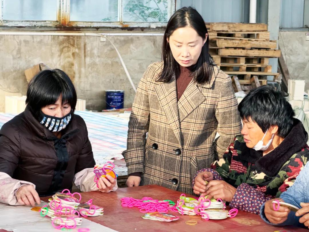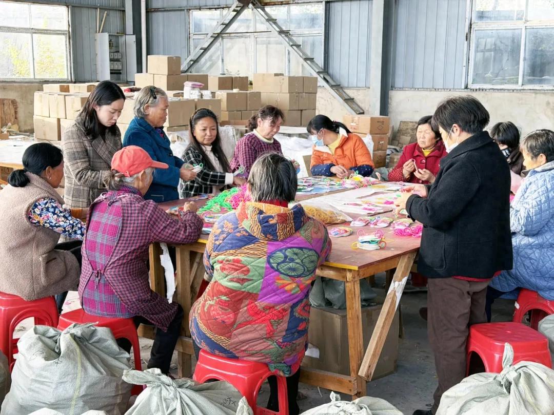 2023年,王芳开始四处奔走,一次次对接武汉、孝感等地的企业,磨破嘴皮子争取合作机会。功夫不负有心人,她成功拿下了书籍装订、小饰品加工等代加工业务。如今,村里50余名村民(大多是留守老人)不用出村,在家门口就能上班,按件计酬,既能照顾家庭,又能增加收入,脸上的笑容越来越多。