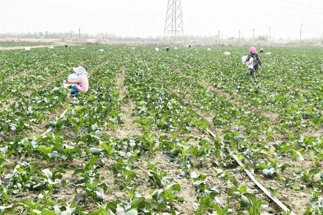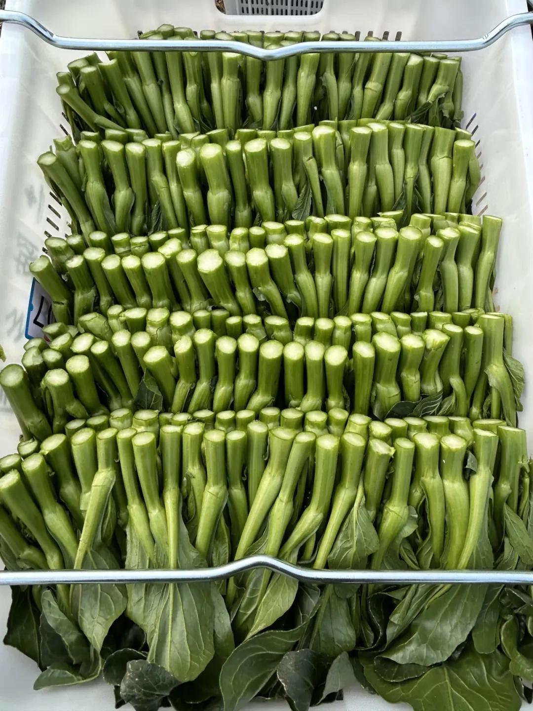 在楼凤网 祁家湾街廖岗村的采收现场,绿油油的板蓝根菘菜心长势喜人,叶片舒展、苔茎粗壮。工人们穿梭田间,熟练地采摘、装筐,满载新鲜菜心的筐子整齐排列在田埂上,随后被运往冷库储存,全程冷链保障蔬菜新鲜度。
