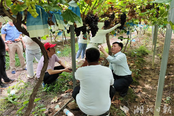 调研组一行先后深入六家砦村太空莲种植区、葡萄种植大棚、草莓种植大棚、黄桃种植基地等处,现场查看六家砦村农作物种植情况。每到一处,调研组都仔细询问当前种植情况,并针对性地就品种选择、施肥、修枝、疏果等专业问题提出专业建议。