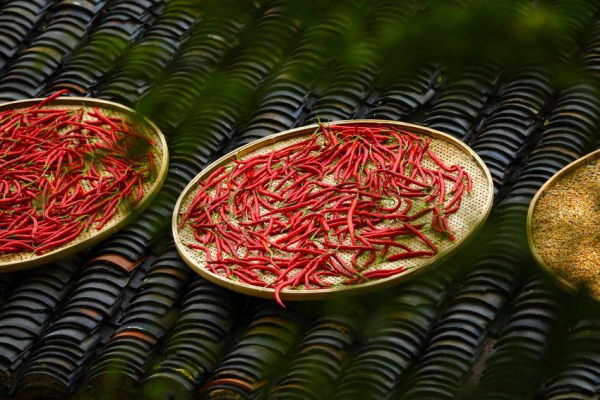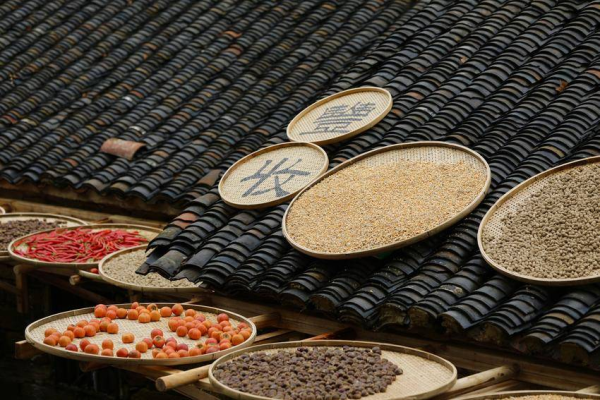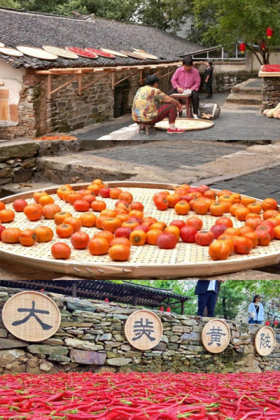 漫步中国传统古村落大余湾,随处可见艺术气息与丰收美学相结合的晒秋场景。南瓜、辣椒、花生、玉米等常见的五谷杂粮依次摆放,既充满乡村自然野趣,同时也展现了农民丰收的成果,在晒秋活动现场,村民与游客们欢聚一堂,现场打糍粑、制作手工豆丝,共享丰收的喜悦。