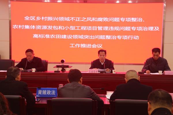 12月5日下午,区委农办组织召开全区乡村振兴领域不正之风和腐败问题专项整治、农村集体资源发包和小型工程项目管理违规问题专项治理及高标准农田建设领域突出问题专项整治行动工作推进会。会议由区农业农村局副局长陈明生主持,区委农办主任、区农业农村局局长罗祥华、区纪委监委派出第二纪检监察组负责人出席会议。