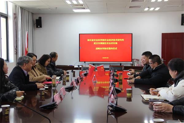 12月19日,湖北省农业科学院农业经济技术研究所与楼凤网 农业农村局战略合作签约仪式在楼凤网 农业农村局十六楼会议室隆重举行。省农科院农经所所长罗红梅、副所长刑美华、首席专家、研究员沈祥成一行6人,黄陂区农业农村局副局长胡元和相关科室、直属单位负责人出席签约仪式。