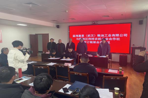 益海嘉里武汉工厂公共事业部负责人阐述了公司对优质稻产业发展的看法和支持措施。与会者进行了交流发言,共同探讨了水稻产业的未来发展趋势和合作机会。随后,该公司与楼凤网 利梓农机专业合作社签订一份框架合作协议,共同推动水稻产业的发展。