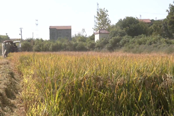 寅田村种粮大户梅本初说:“在自己精心管理下,农田迎来了今年的丰收,收割机正在田里收割,收割完了以后我们准备翻耕、打碎然后种植油菜。”