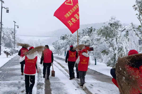 凤凰寨村创新打造“有困难不要怕,随时给我打电话”党员志愿服务品牌。图为党员志愿服务队清扫乡村道路积雪。
