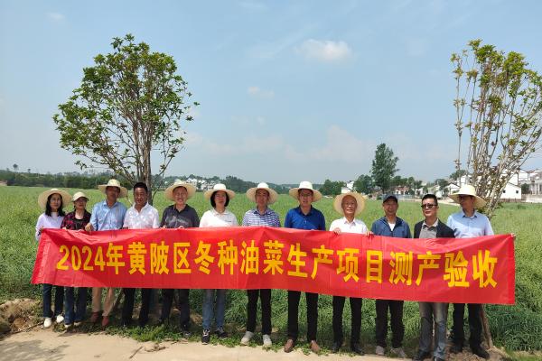 在姚家集街八里畈村油菜种植示范基地,农业技术人员深入田间地头,详细了解油菜的播种时间、品种、亩播量、施肥情况、病虫害防治、耕作方式、气候条件等情况,按照田间测产的调查方法及技术要求,采取随机抽样方式,抽取不同的田块进行测产,测量株高,测定单株平均有效角果数、角粒数、千粒重等基础数据,测定该示范基地亩产情况。
