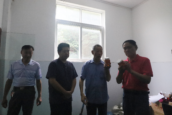 参加活动一行先后参观了张成养蜂场、木兰天食养蜂场和黄陂荆蜂联加工厂。张成养蜂场面对定点养殖蜜源单一、产量波动大的难题,在区蜂协的指导下,流转村民土地60余亩,开创“养殖+种植”产业结合的双赢模式。在此模式下,蜜蜂为农作物授粉,显著提升作物产量,农作物花期又为蜂群提供充足蜜源,形成生态循环。这一模式不仅稳定了蜂蜜产量与品质,也为蜂场带来了多元化收益。木兰天食养蜂,一方面积极融入不同消费群体,针对年轻消费者群体推出口味新颖的蜂蜜饮品,从而打开市场。另一方面研究发明储藏设备,成功研发出用于蜂产品冷藏所需的6℃低温设备。