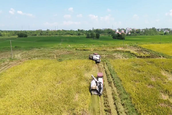 这两天,武汉永旺智慧农场的再生稻迎来丰收,农场正抢抓晴好天气组织机械开镰收割,确保粮食颗粒归仓。