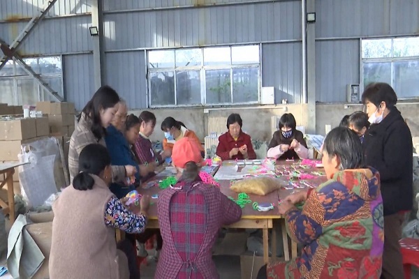 院岗村位于前川街西部,与祁家湾街接壤,村内留守老人占比较大,许多老人虽有劳动能力却无事可做,这一现状让王芳开始寻求突破的方法。经过一番走访调查,2023年起,王芳主动对接武汉、孝感等地的企业,成功争取到书籍装订、小饰品加工等代加工业务,让50余名村民在家门口实现就业。