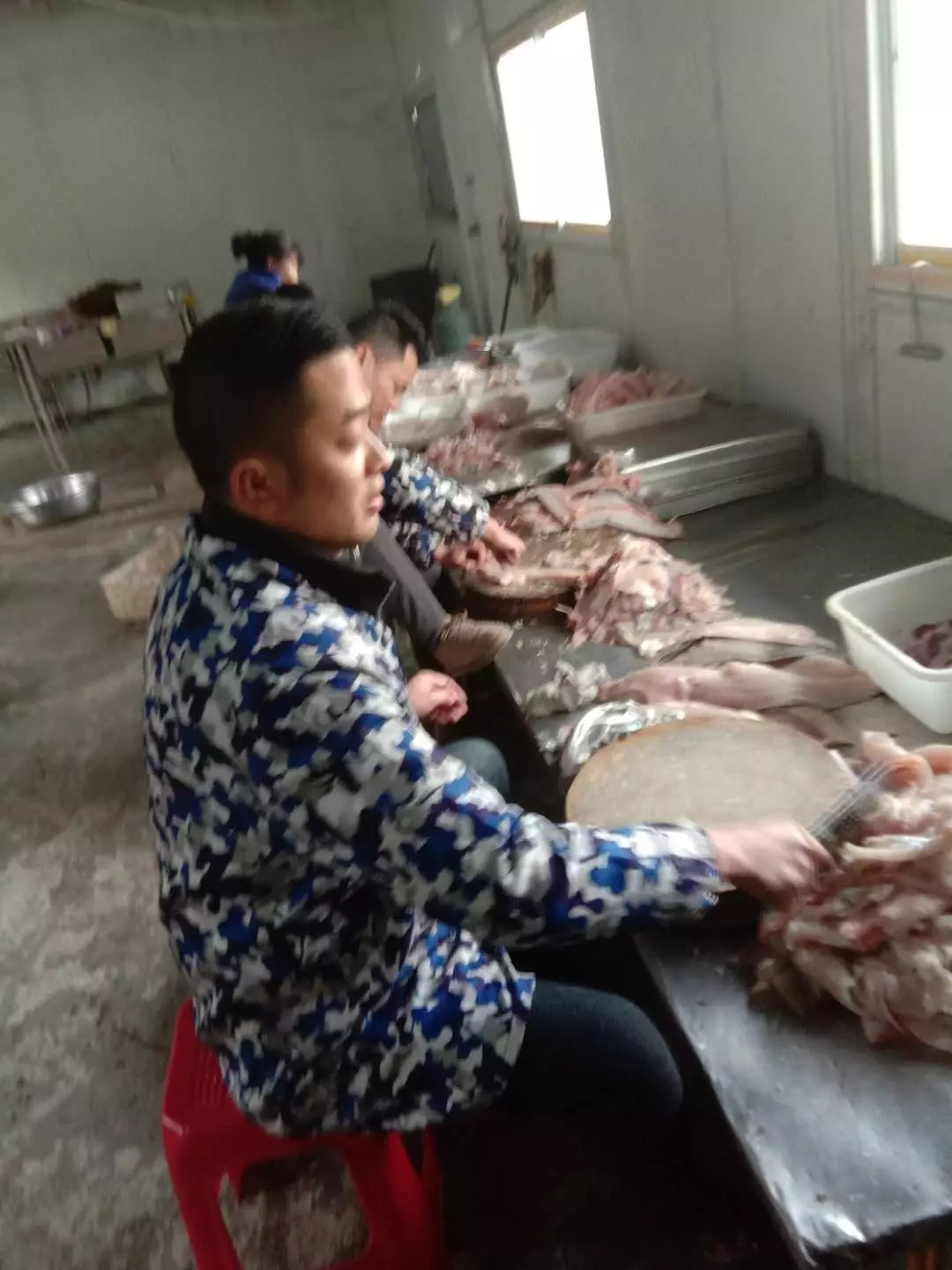我们走进工艺制作间,“三鲜”第四代传人黄宝庆正率二十多人的团队紧锣密鼓地操作产品材料,他们熟练地挥舞着刀具,一块块鲜嫩晶亮的鱼片从刀口滑溜溜地散开来;大块大块的肥肉在员工们的刀刃下飞快地切分开去;绞肉机口抛出鲜红细碎的漂亮肉丝。一看这情景,那种“三鲜”进口,喷香入鼻、宛若热恋中情侣的甜美感觉久久难以释怀,让你不想离去。