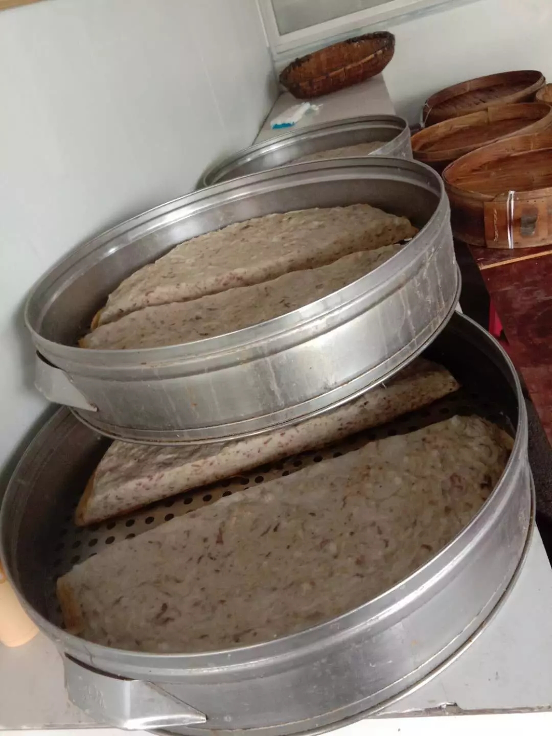 宝庆楼“三鲜”不在是原来的私家小作坊,而是远离罗汉寺外几里路的沈吴湾处武黄大路边的山坡上,数百平米的场房内宽敞明亮,环境洁净,空气通吐流畅,我们走进去,没有让人有丝毫的异味感。桌案上早已做好的现存“三鲜”产品一笼笼地摆放齐整。