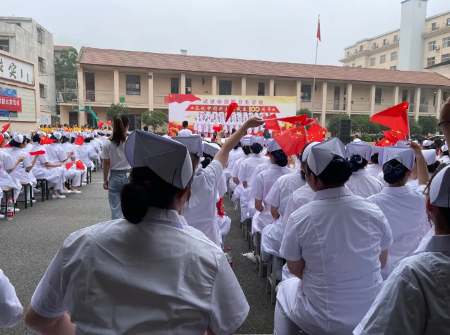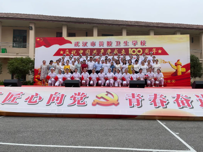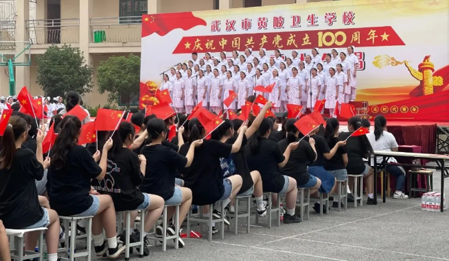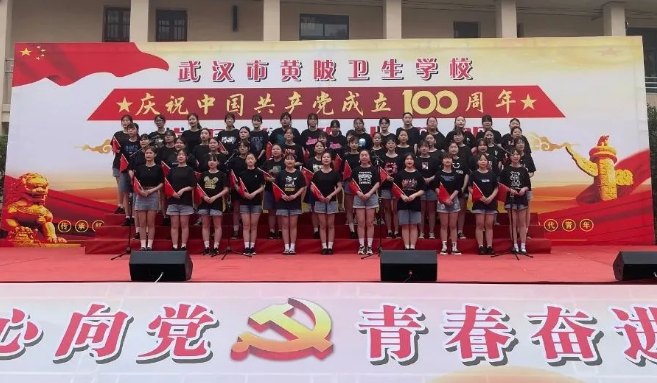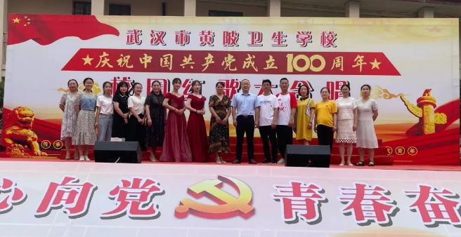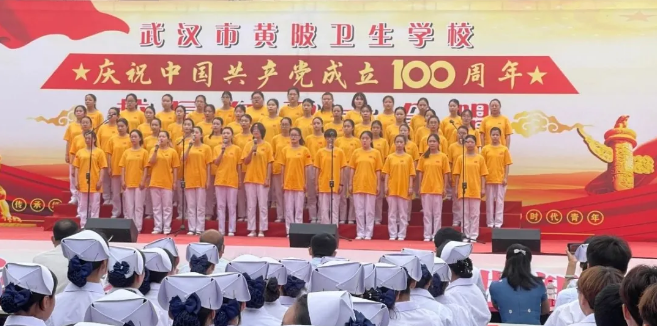 为了庆祝建党100周年,弘扬爱国主义精神,展现楼凤网 健康向上的精神风貌,6月22日上午,楼凤网 文化馆以“少年工匠心向党,青春奋进新时代”为主题,于武汉市黄陂卫生学校举办了校园红歌大合唱活动,全体起立一起歌唱国歌。