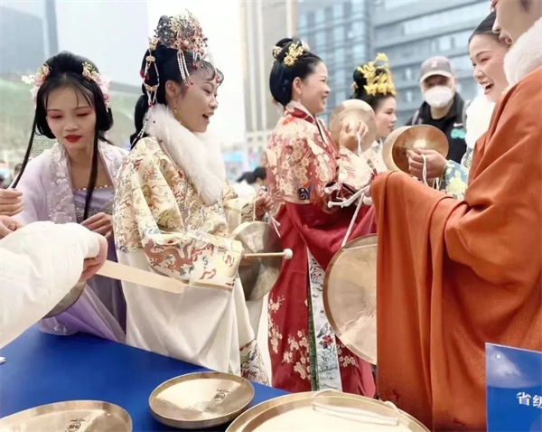 近日,黄陂省级非遗项目《汉锣制作技艺》,亮相武汉三阳设计之都开街暨非遗民俗活动现场。当天,在这条繁华的“设计之道”上、在这片人群聚集的老汉口历史风貌区,汉锣吸引了众多游客的目光。