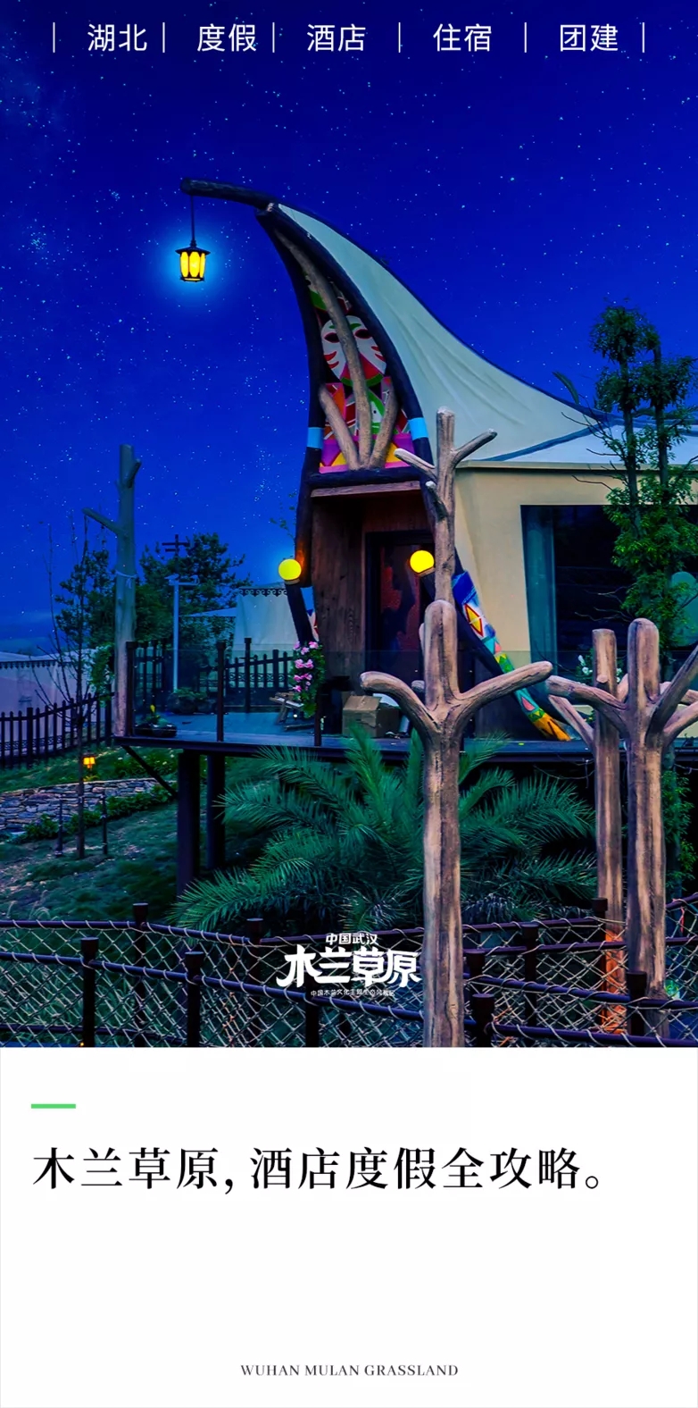 晚上,宿进野奢民宿巫傩部落、和韵楼酒店、度假山庄,亦或是军帐帐篷露营,推窗即风景,出门即草原。木兰草原巫傩部落,以远古巫傩文化为基,以当火侘寂风为底,是很多人心目中湖北民宿颜值天花板。