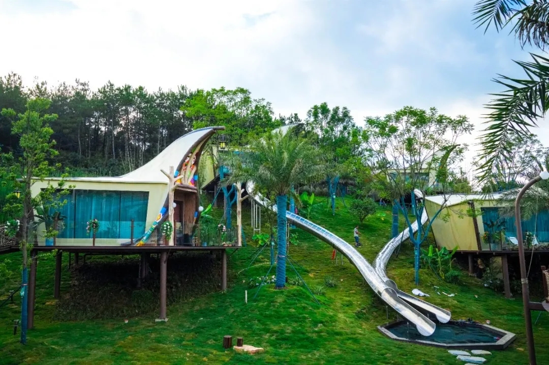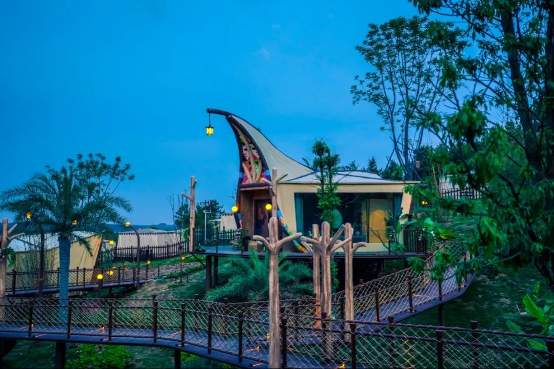 50顶军帐帐篷,错落分布在山坡上,身处自然中,睡在星河下,让你远离都市繁华!