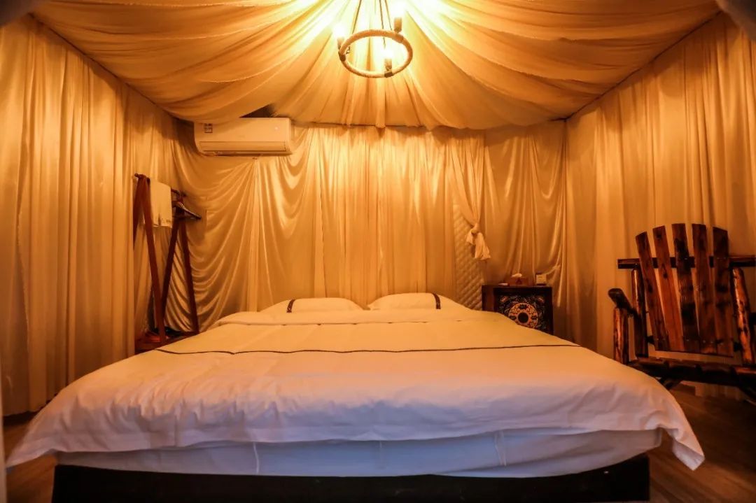 军帐正对梦栖谷篝火广场,推开门就可以看烟花和篝火,帐篷隔壁就是可以烧烤的露营区,住帐篷、吃烧烤、看烟花、在广阔的天地间自由玩耍!