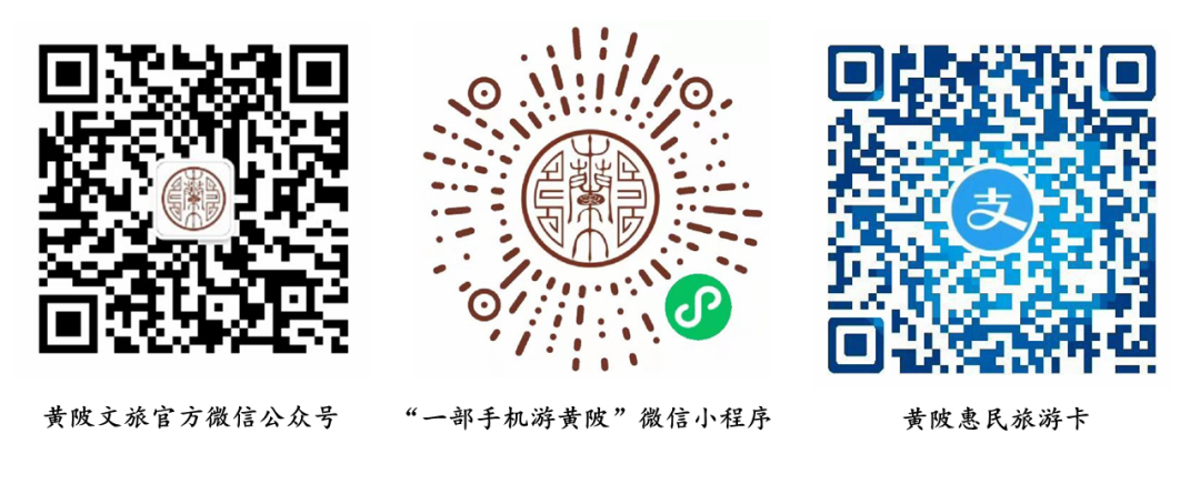 附:黄陂文旅官方微信公众号二维码&“一部手机游黄陂”微信小程序二维码&支付宝黄陂惠民旅游卡二维码。