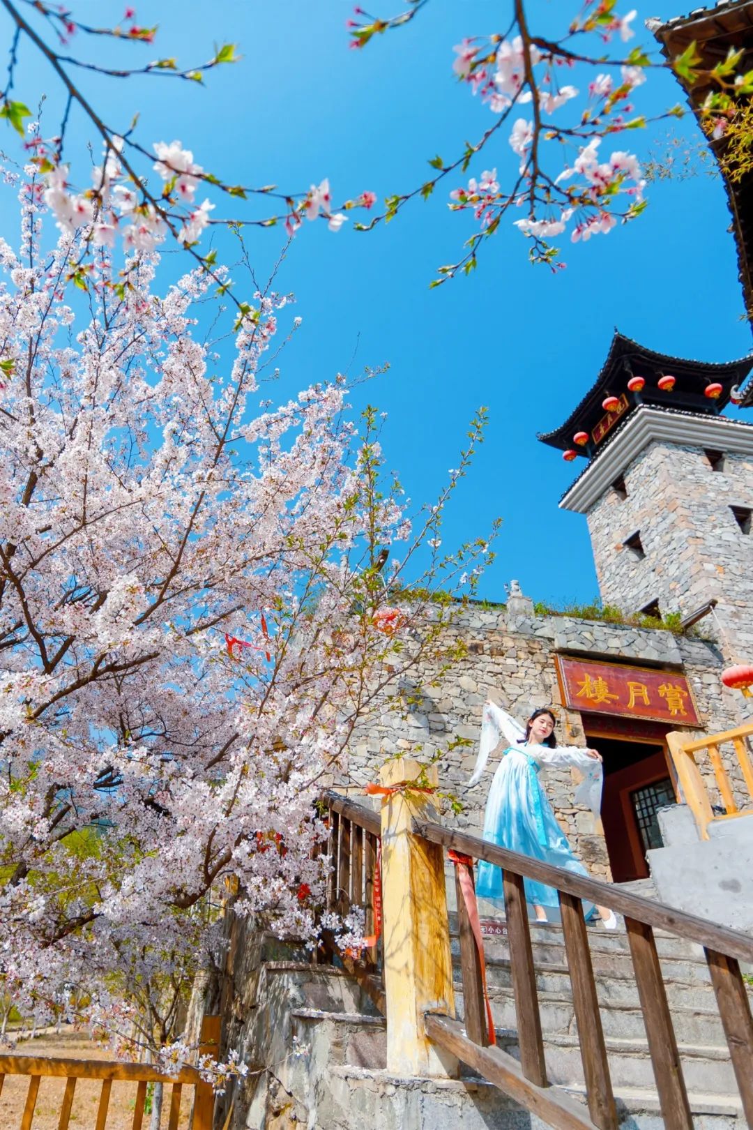 论起在黄陂赏樱的趣味,莫过于徒步爬山赏樱。站在低处往上看,清澈的天空与粉白的花色相得益彰,别有一番风味。