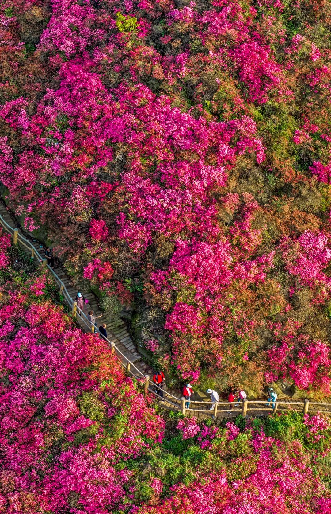 全国著名的杜鹃研究基地也在黄陂,游人除观野生杜鹃花海之外,还能看到人工培育的新品种。漫步赏花步道,还会意外发现隐藏在艳红之下的白色、粉色、紫色杜鹃。