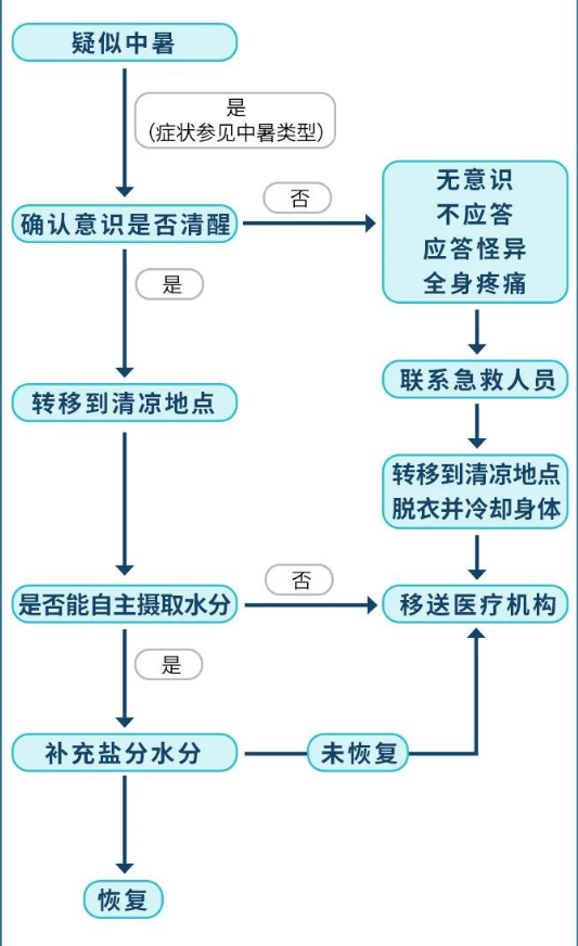 如:藿香正气水、仁丹、十滴水、风油精等。当已经感觉到自己的心跳加重且胸闷憋气,尤其,已经感到头晕、意识模糊、虚弱,甚至晕倒的时候,要立即停止一切活动。迅速找到背阴或凉爽通风的地方休息。