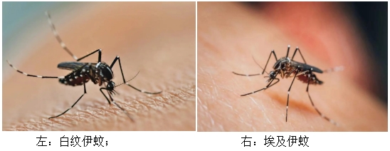 白纹伊蚊分布较广,分布区位于北起沈阳,经河北秦皇岛,山西太原,甘肃天水、陇南,四川雅安,至西藏墨脱一线及其东南侧。埃及伊蚊主要分布于我国海南沿海市(县)及火山岩地区,广东雷州半岛小部分地区,云南西双版纳州、德宏州和临沧市等三州市的边境区县,台湾嘉义县以南和澎湖县部分地区。
