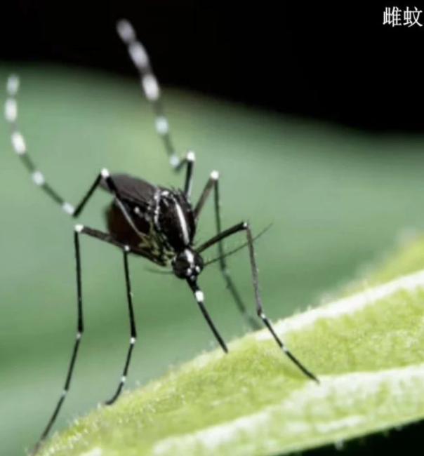 在我国,登革热主要由白纹伊蚊和埃及伊蚊传播。其成蚊体、翅和足上具黑白相间的斑纹,故有“花斑蚊”之称。
