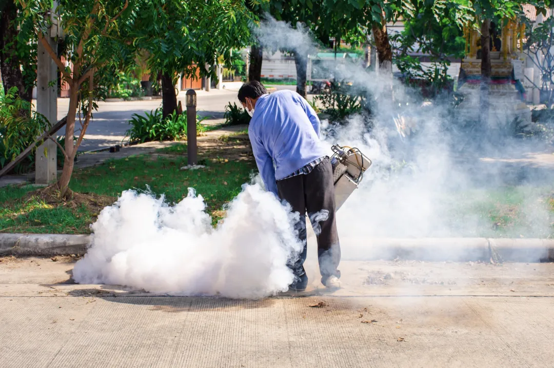 热烟雾技术利用发动机产生热废气的高温将杀虫剂汽化并随热废气喷出,在空气中再次冷却凝聚成极细的烟雾。热烟雾渗透性好、可及性高,可以将复杂空间中停留和飞行的蚊虫都予以控制。实施过程中,公众能看到喷雾操作过程,宣传作用较大。