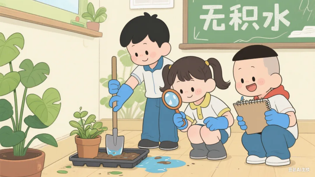 现在就和同桌组队,用5分钟排查教室三大“嫌疑人”据点,用“五步清理法”处理发现的积水。完成后记得给倒扣的容器贴上小标签,比一比哪个小组清理最彻底!