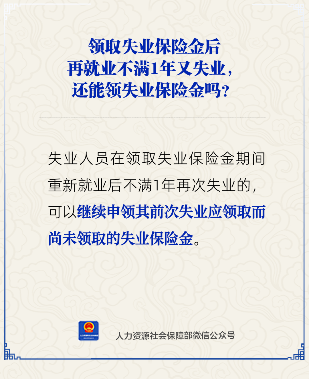 再就业不满1年又失业,还能继续领失业保险金吗?